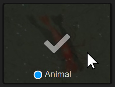 The single difference between the selection of training proposals and the selection of annotation candidates is that you have to attach labels to annotation candidates when you select them. Before you can select an annotation candidate, choose the label from the label trees in the sidebar that describes what you can see in the image thumbnail of the annotation candidate. With the label selected, click on the thumbnail of the annotation candidate to select and attach the label to it.